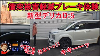 【新型デリカD:5】衝突被害軽減ブレーキ体験 ♪ 危険を察知するとアラームが!!